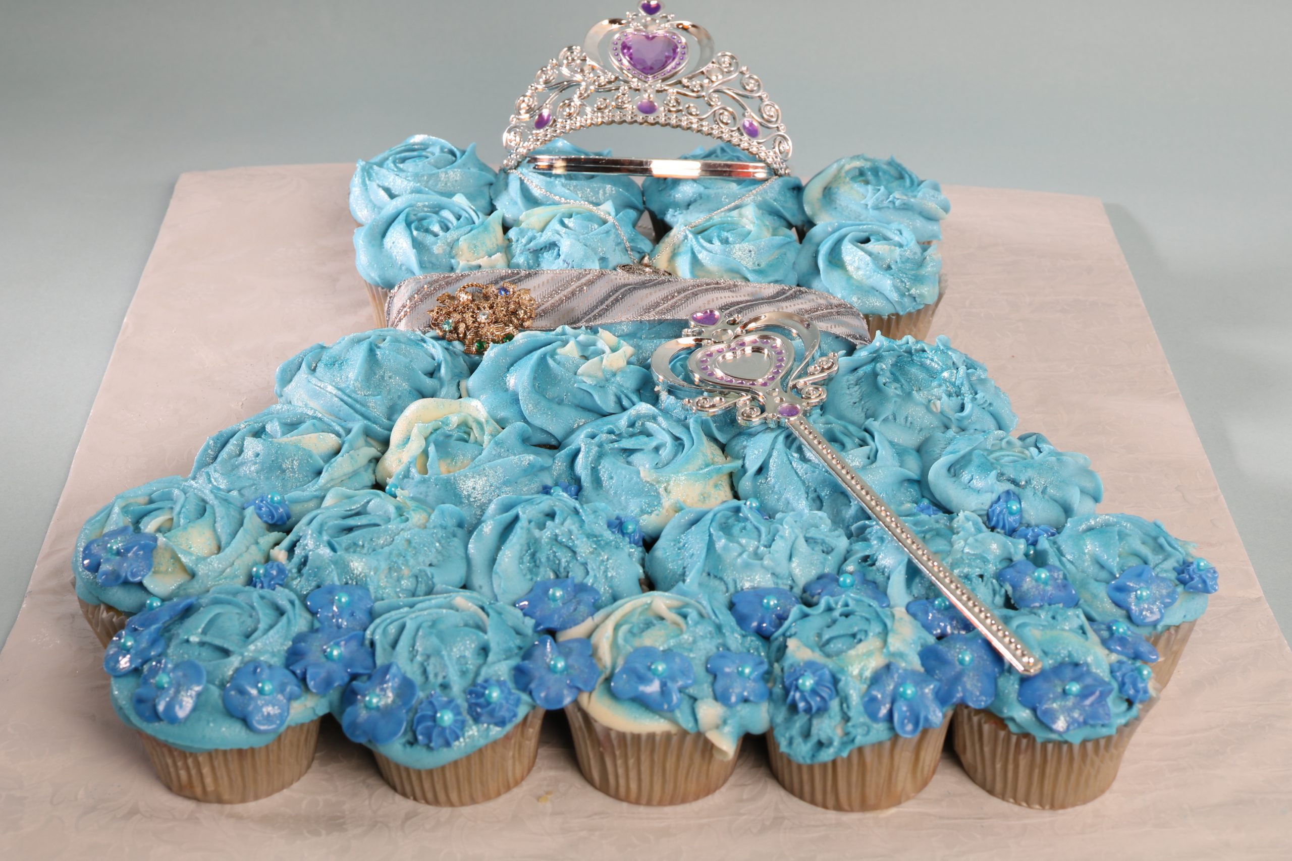This pull apart cupcake cake is frosted princess dress dream come true.